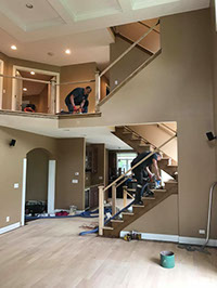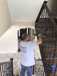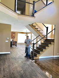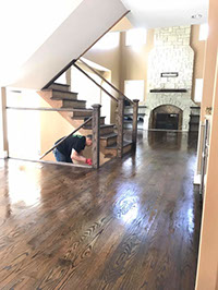 HARDWOOD FLOOR STAINING AND DUSTLESS SANDING - INSTALLATION OF NEW SPINDLES