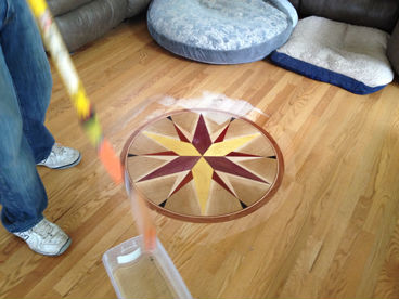 Medallion is placed into the floor, some additional spacing so new wood will be placed around
