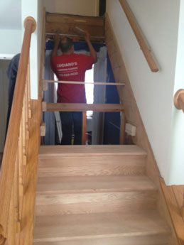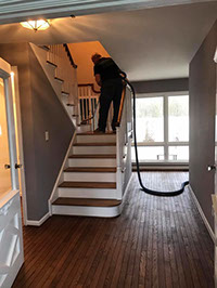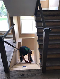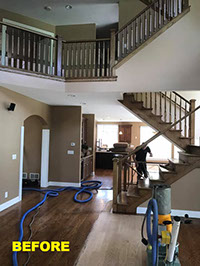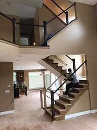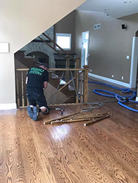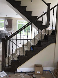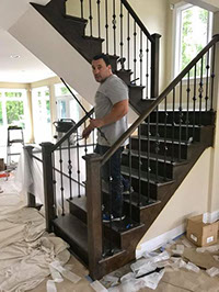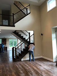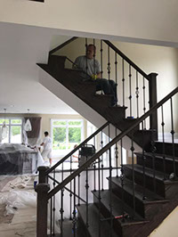 HARDWOOD FLOOR STAINING AND DUSTLESS SANDING - INSTALLATION OF NEW SPINDLES
