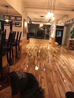 YOLK Restaurant Downtown Chicago, IL - dustless floor refinishing - applying the first coat of finish